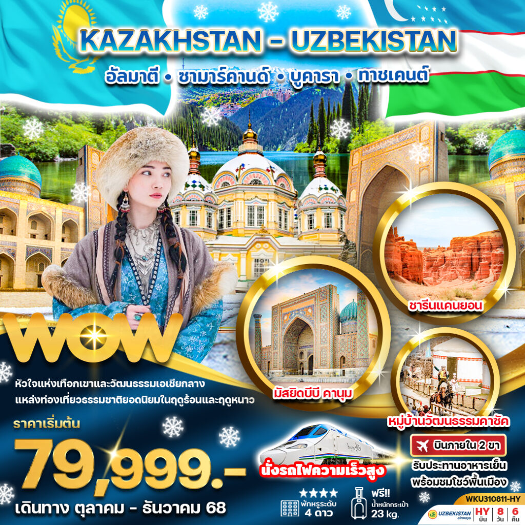 ทัวร์คาซัคสถาน อัลมาตี อุซเบกีสถาน ซามาร์คานด์ บูคารา ทาชเคนต์ 8D6N
