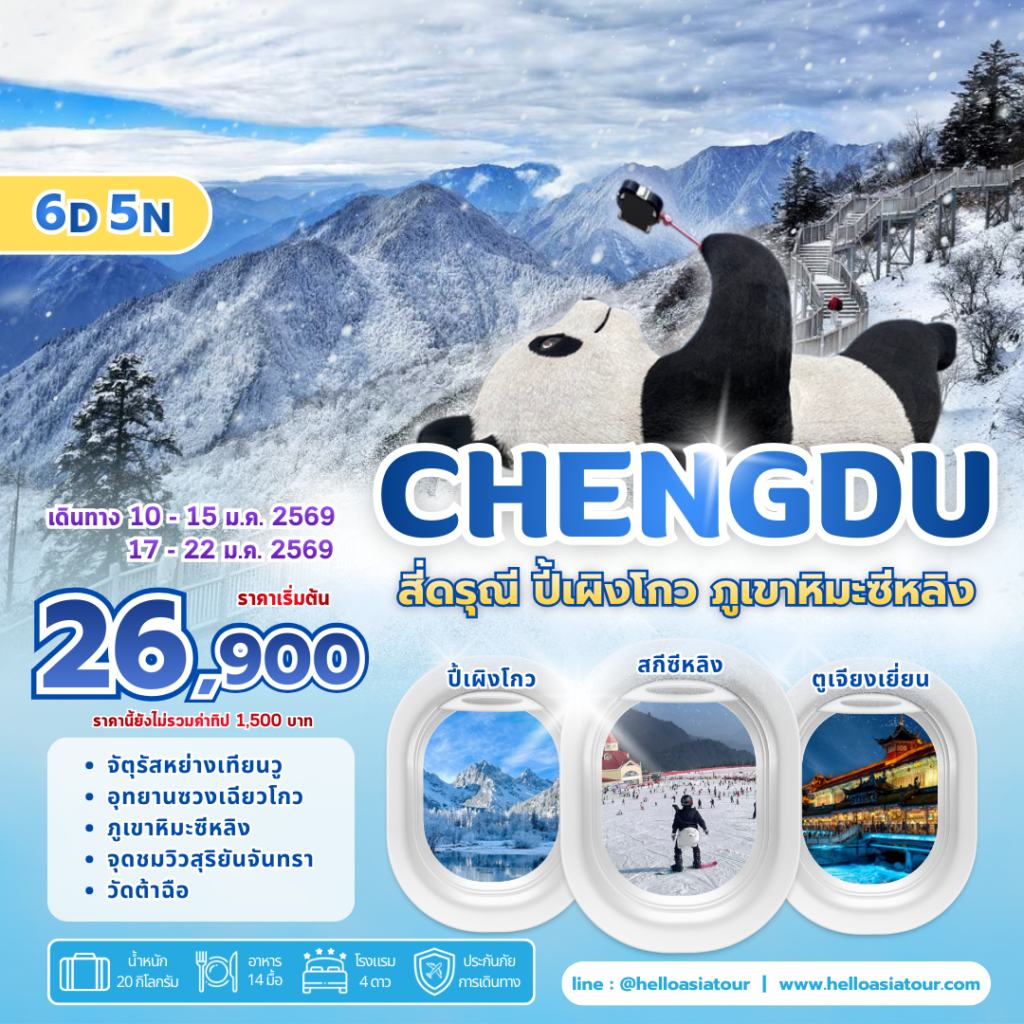 ทัวร์จีน เที่ยว 3อุทยาน เขาสี่ดรุณี ปี้เผิงโกว ภูเขาหิมะซีหลิง 6D5N (EU) สัมผัสหิมะที่เขาซีหลิง - Hello Asia Tour